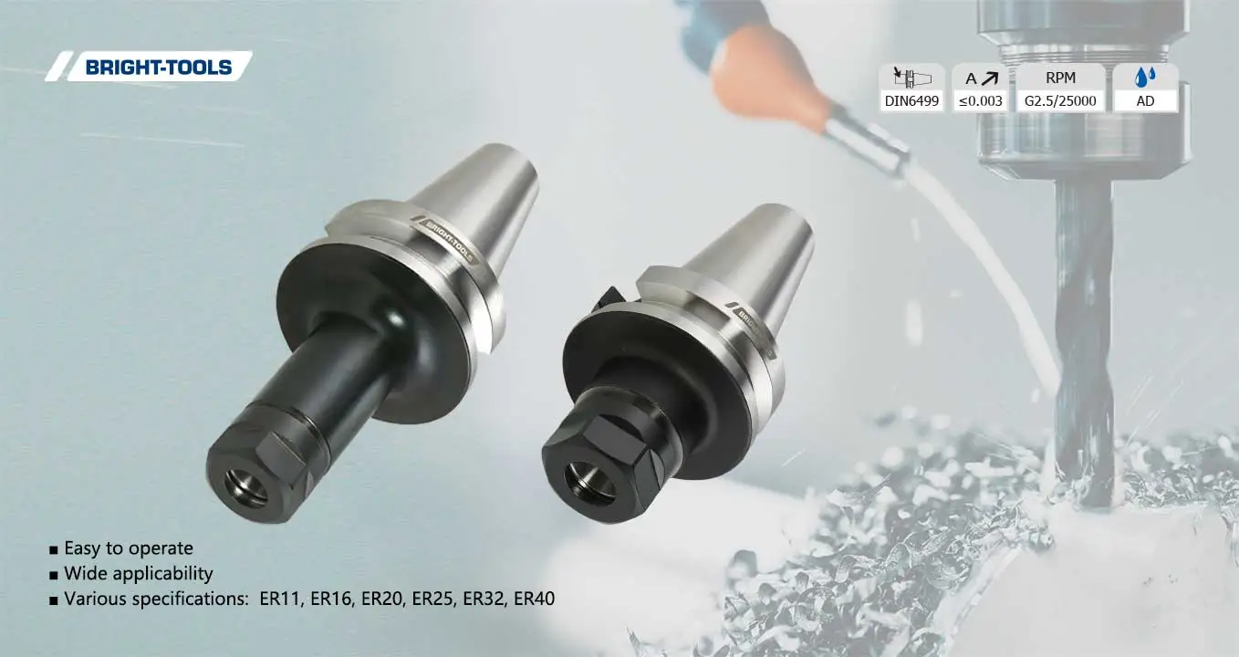 BBT-ER 공구 홀더는 공작 기계 가공에서 일반적으로 사용되는 공구 홀더입니다. 그것은 도구 홀더 본체와 ER 콜렛으로 구성됩니다. 주로 드릴 및 밀링 커터 가공과 같은 직선 생크 절단 도구를 클램프하고 고정하는 데 사용됩니다.