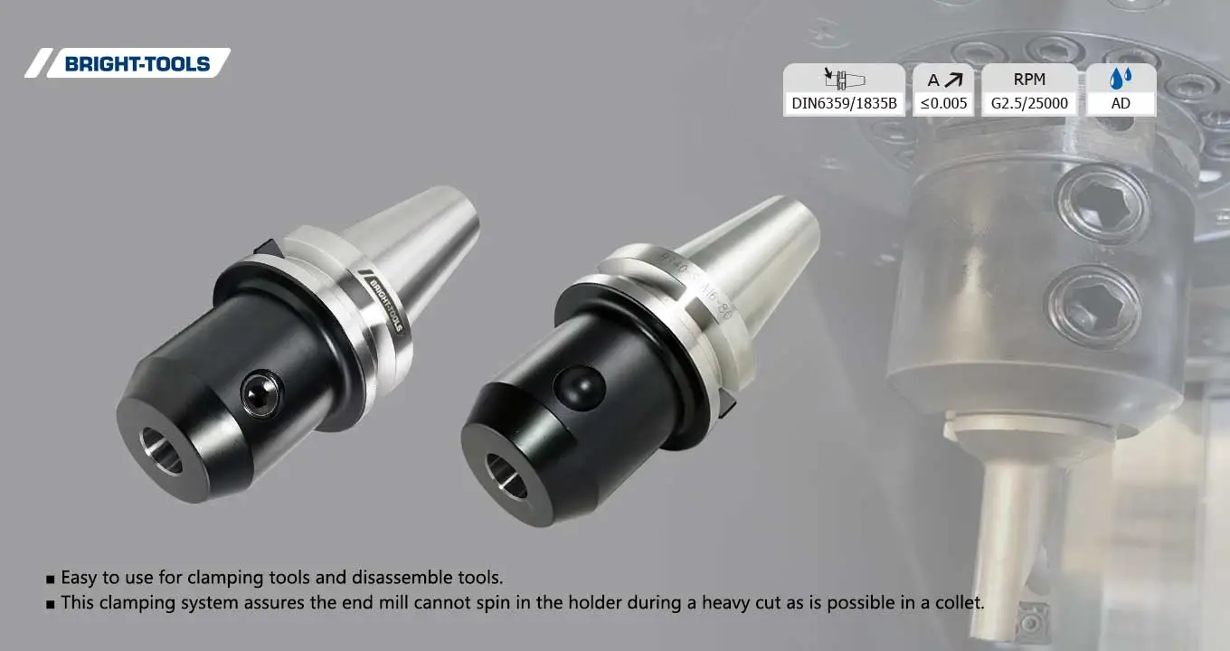 BBT 엔드 밀 홀더는 콜렛보다 강성이 높은 절삭 공구를 보유하고 있습니다.
